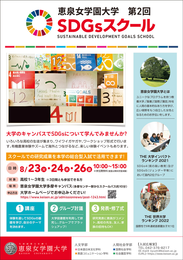 | 場所 | 恵泉女学園大学多摩キャンパス 多摩センター駅からスクールバスで約10分 |