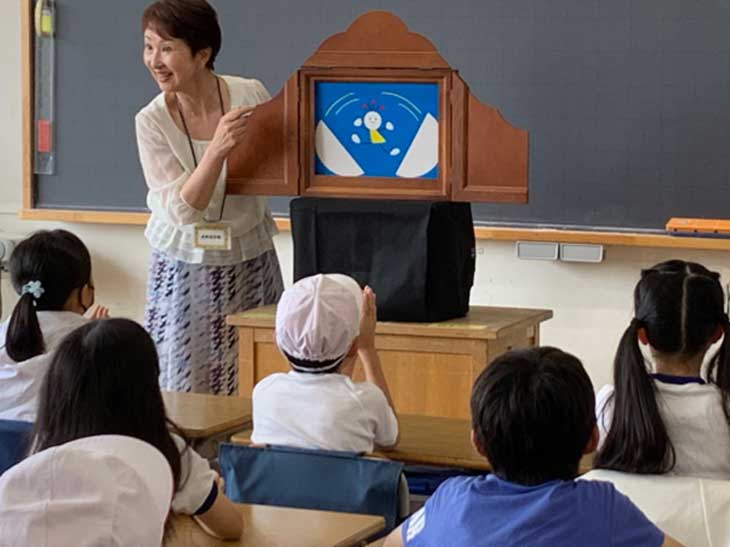 5/30金 多摩市立第二小学校 朝の紙芝居シアター2回目