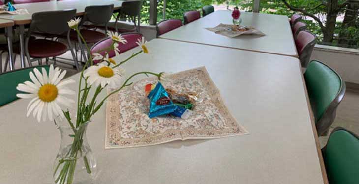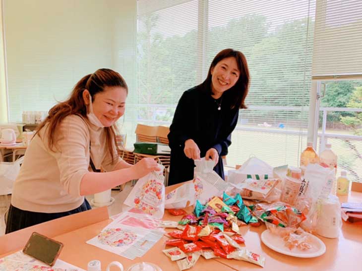 卒業生スタッフが毎年支えてくださるからこそ開店できる「エンジェルカフェ」。今年もお茶とお菓子、お花など、用意を整えてお客様をもてなしてくださる方々です。