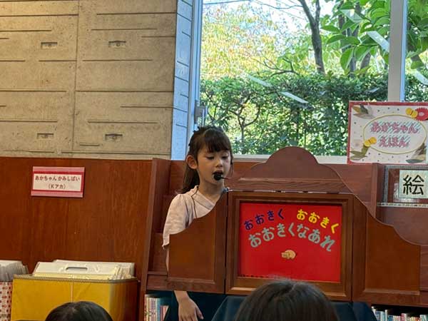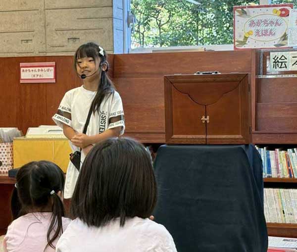 9/27(土) 唐木田図書館児童図書コーナーでのおはなし会に、KPKAキッズ2名とシスターズ2名が出演しました。