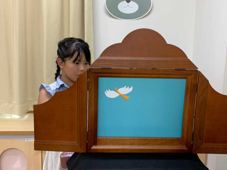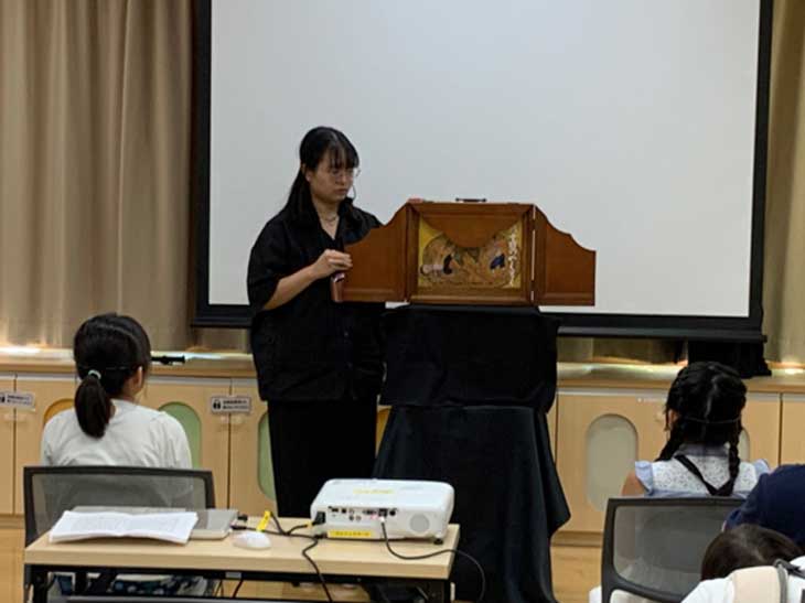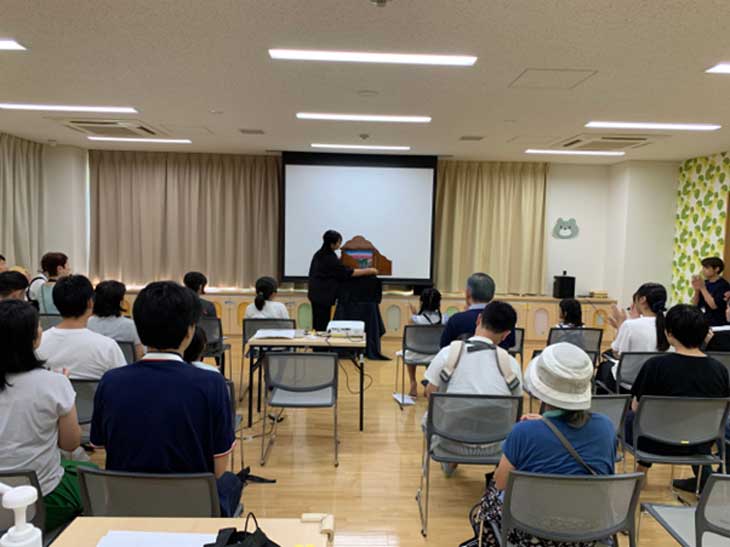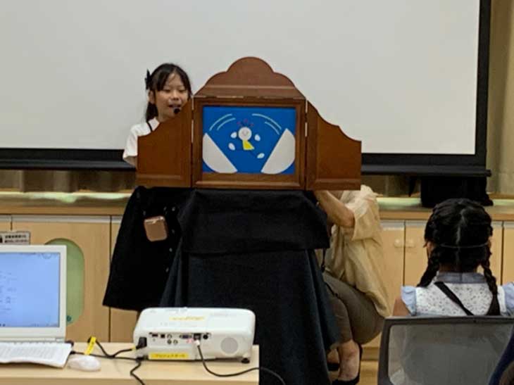 司会を今年から社会人となった卒業生の〇さんが担当し、この夏に6名となったKPKAキッズの小学生4名と韓国からの協定留学生のCさんが平和紙芝居5作品を実演しました。