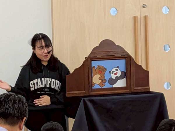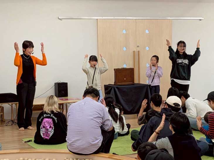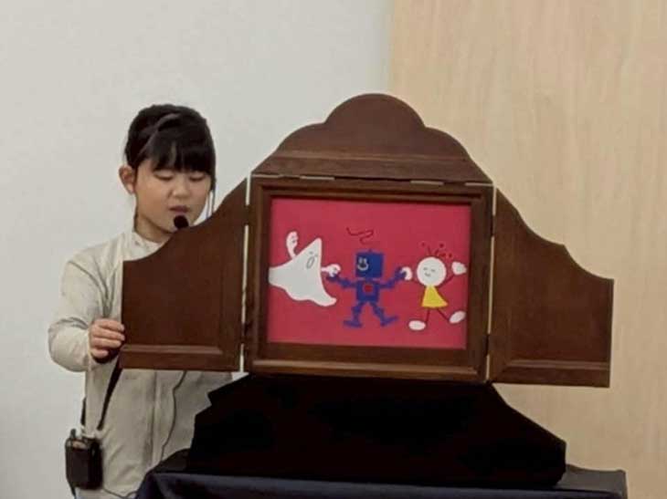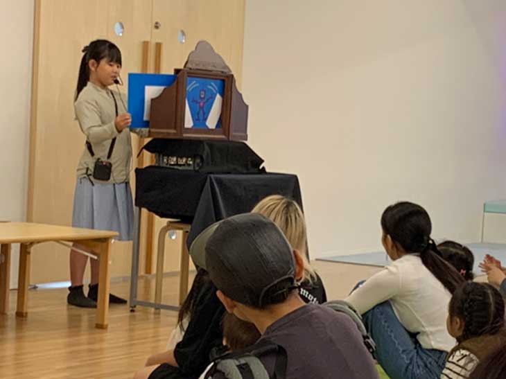 次に登場したのは留学生のCさん。ジェスチャーと声の変化の楽しさで、大人も子どもも紙芝居に惹きつけられていきます。