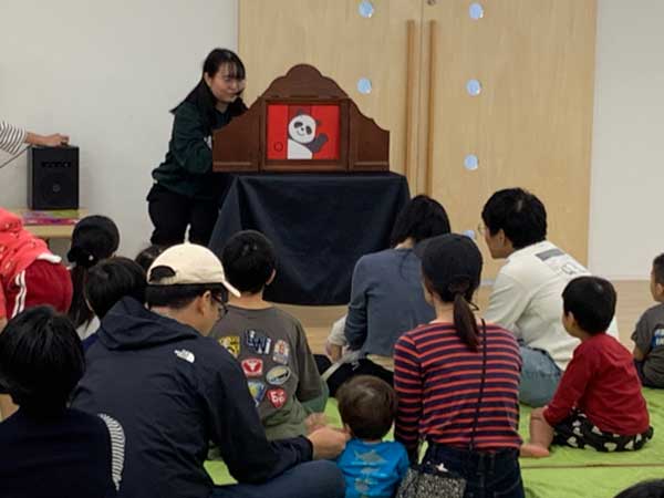 10/11土 パルテノン多摩4階の「こどもひろばOLIVE」には、今回も大勢の親子が集まって、KPKAの紙芝居シアターの開催を待っていてくださいました。