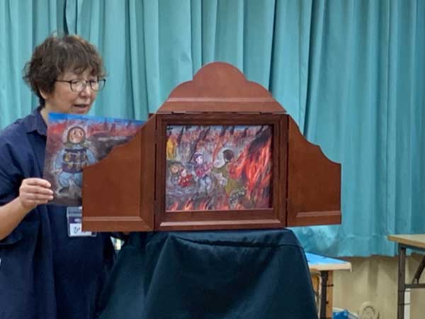 10/15水 この日は午前に唐木田児童館フェアリールームで、午後は諏訪南学童クラブで紙芝居シアターを行いました。