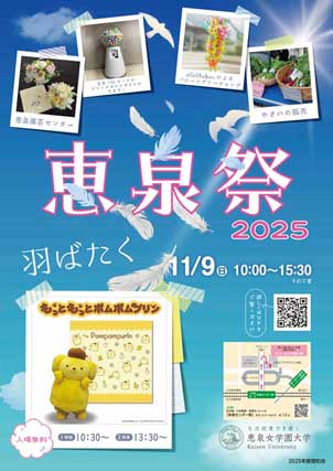 恵泉祭のテーマは学生が決めていますが、今年の「羽ばたく」にこめられた学生たちの思い、すなわち、"大空に美しく舞い上がりたい"との思いは、日々、学生の傍らにあって、その学びに寄り添っている私たち教職員の願いでもあります。大空に向かって翼はためかせながら飛んでいく姿を想像するとき、多摩キャンパスでの日々が、いつかその日のために豊かな実を結ぶようにとの祈りに、喜びと使命感を新たにいたします。