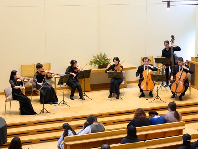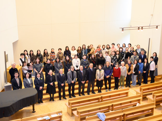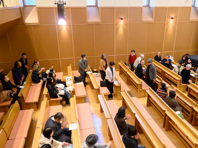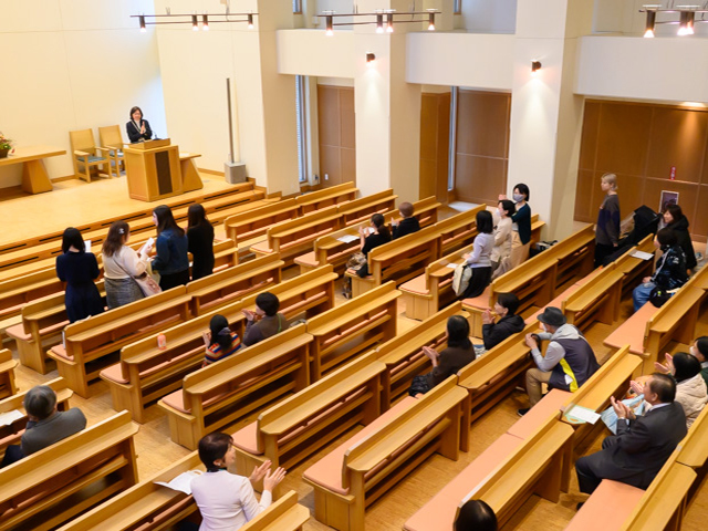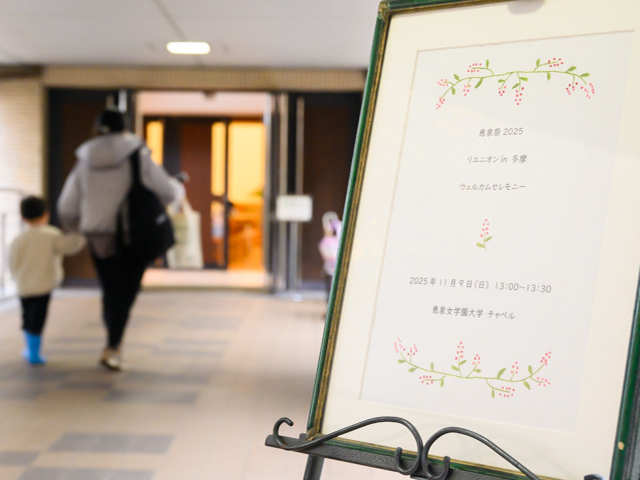そしてさらに、今日は卒業生や旧職員の皆さま、学園関係者の皆さま、地域の皆さま、恵泉を支えてくださる多くの方々をお迎えいたします。今日の出会いを通して、未来に羽ばたく力を得られますように、あなたの励ましと祝福を祈ります。今日一日、多摩キャンパスに足を運んでくださるお一人おひとりが豊かなひと時を過ごされますように。このお祈りを、イエスキリストのお名前を通して、御前におささげいたします。アーメン。