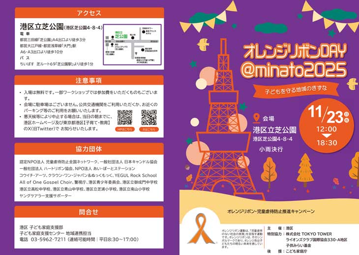 また11月23日には、港区立芝公園でオレンジリボンDAY@minato2025が開催されました。