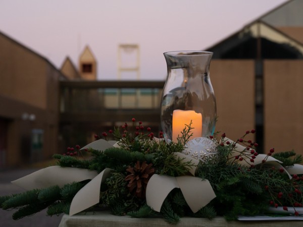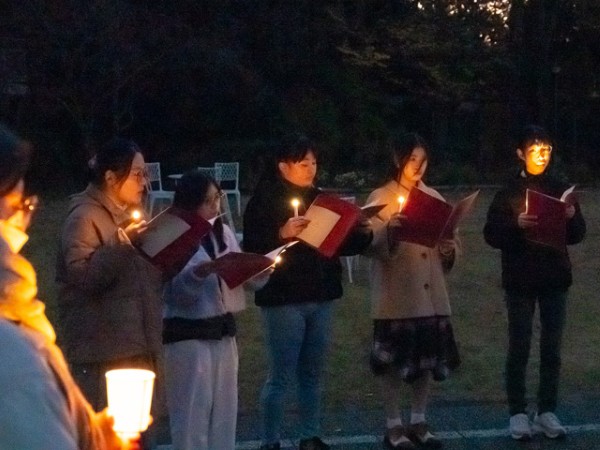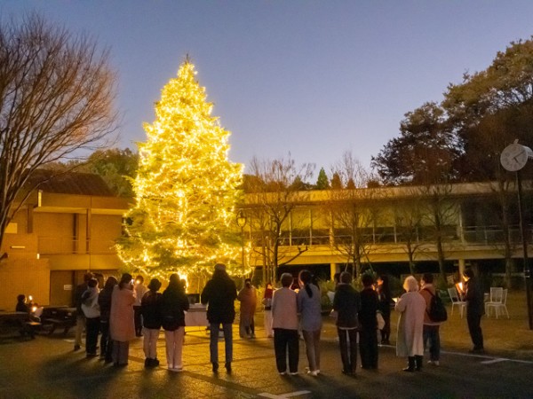 チャペルをはじめとして構内の随所に、クリスマスを待ち望む心で装飾が施されています。また、それに先立って、11月26日の夕刻、クリスマスツリー点火式を行いました。