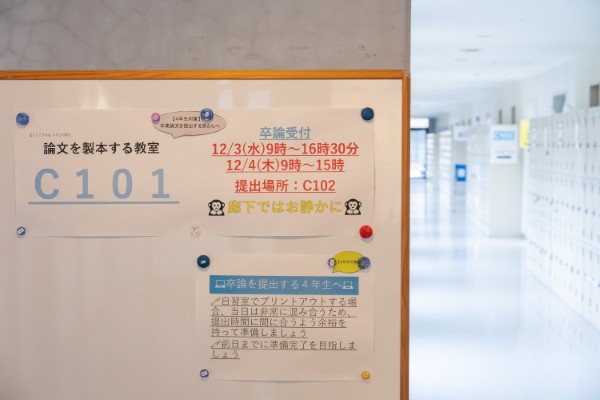 先週、12月3日(水)・4日(木)の2日間、4年生の卒業論文提出が行われましたので、ご報告いたします。