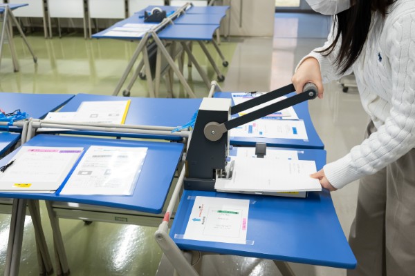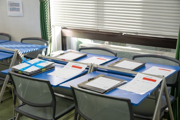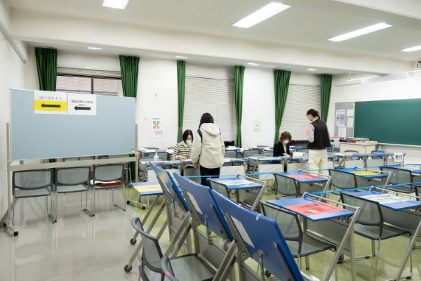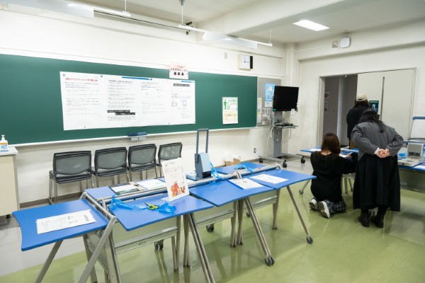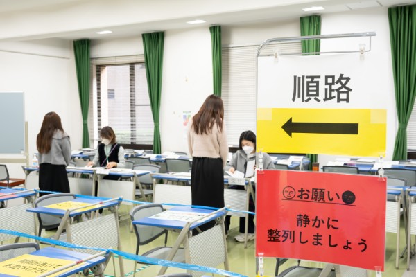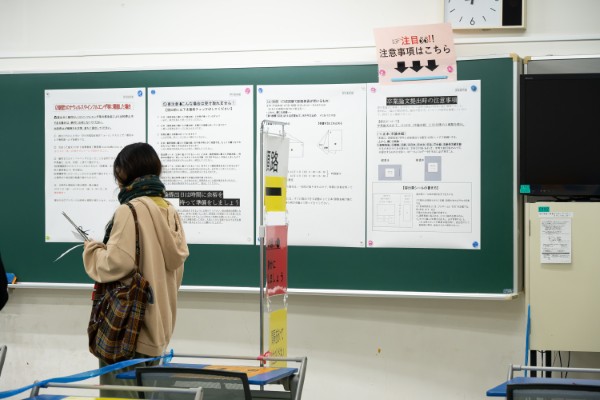 今年は学生数が少なくなっておりますため、提出会場は例年の大講堂からC棟1階の2部屋に変更されました。