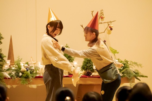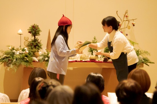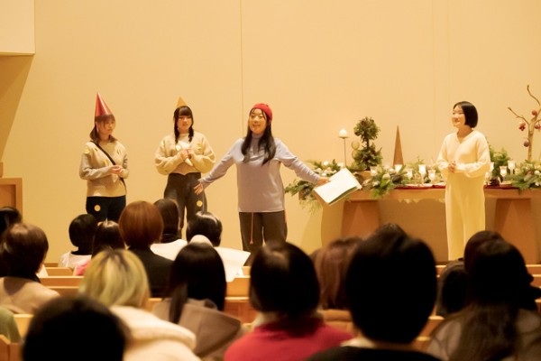今年のテーマは「クリスマスの贈りもの~平和のタネをあなたに~」と題し、マックスルケード作・絵本『たいせつなきみ』を元に、クリスマスバージョンの展開を創作いたしました。様々な人と関わりながら生きる中で、私たちも主人公のパンチネロと同じように多かれ少なかれ、人と比べてできない自分に落ち込んだり、周りからの評価ばかりを気にして暮らしていないでしょうか。「君には君だからできることがある」と語りかけてくださっている創り主。チャペルに集った皆さんが、演じ、賛美し、演奏し、祈り、その一瞬一瞬は、それぞれに与えられている賜物、「私だからこそできること」が光るひと時となりました。