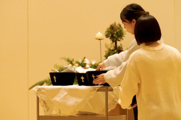 いつもならば、あたたかなチャペルで迎えるクリスマス賛美礼拝。今年は床暖房の不具合により皆さんに寒い思いを強いてしまいました。しかしながら、終了後の皆さんの表情は穏やかで、心が満たされている様子に私の心はホカホカでした。