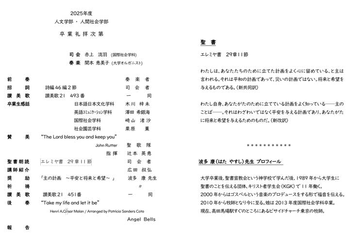 卒業礼拝(次第はこちらをご覧ください)