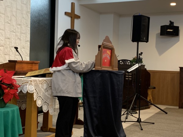 クリスマスのチャリティーイベントでの奉仕をする留学生