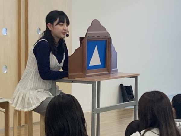 恵泉祭での第一回紙芝居フェスティバルの司会を務める学生