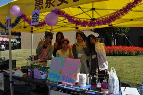 信和会ではチョコバナナ、バナナジュースの販売、恵泉グッズの販売を行います。