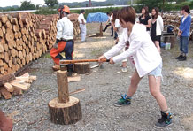 薪の宅配業者の敷地で薪割り体験