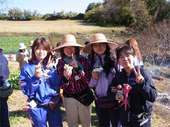 「生活園芸I」では、10月に掘り上げたサツマイモをみんなで試食しました。地域の造園会社さんより頂いた街路樹等の剪定枝で焚き火をして、焼き芋にしました。髪や服が煙臭くなることに構わず、直火の暖かさを求め、焚き火を囲むようにしてサツマイモを頬ばる学生がいました。「こんなに暖かいんだ。火っていいね。」と友達と話している学生もいました。