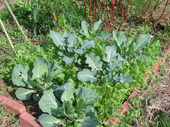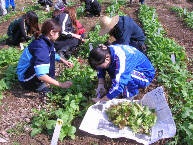 「生活園芸 II」の畑では、先月ブロッコリーとキャベツの株間に、ミズナを播きました。