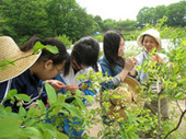 教育農場の一角にブルーベリーが植えられています。壺状の白い小さな花を咲かせています。