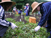 これからは気温が高くなるので、一雨ごとに雑草もぐんぐん伸びます。教育農場では、除草と同時に敷き草をして、雑草が生えるのを防いでいます。敷き草の材料は、地元の造園会社の方が刈り込んだ草を譲り受けています。草は私たちがもらわなければ、ゴミになってしまいますが、農場に敷くことで最終的には土に還ります。教育農場では、地域資源の循環といった観点からも、刈草を有効に使っていきたいと考えています。