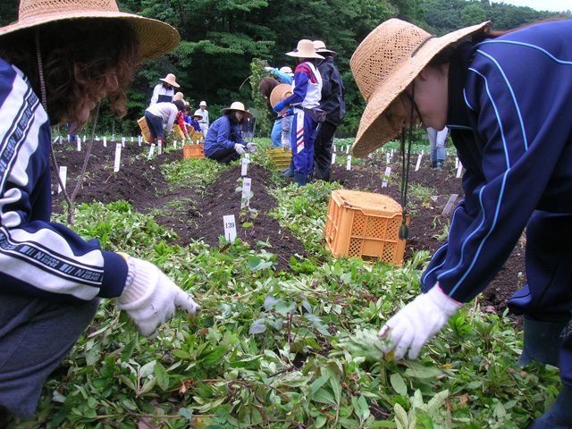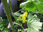 さて、いよいよキュウリの収穫が始まりました。キュウリはあっと言う間に大きくなるので、週に一回の授業では採りきれません。学生は授業時間外にも、農場へ収穫に行くことになるでしょう。採りに行かないと、一週間後には巨大キュウリになります。でも、それはそれで、ズッキーニのように肉詰め料理にして、おいしくいただくことができます。
