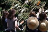 「生活園芸 I」では、暑い中、自分が管理する全ての畑で「除草・マルチ、除草・マルチ、・・・」の繰り返し。