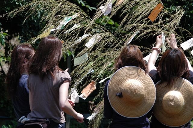 今年も学生が、願い事を書いた短冊をササに結びました。