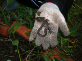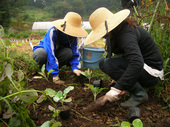 「生活園芸 II」の畑には、7月に播いて育苗しておいたブロッコリーが植えられました。 ちょうどこの日は程よく雨が降っていたので、ミミズさんも元気。 モロヘイヤやトウガラシ、そして最後のミニトマトを収穫しました。 来年のためにシソの採種も行ないました。