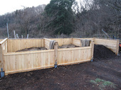 農場の一角には、新しい手作りの木製腐葉土置き場が完成しました。