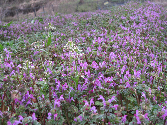 冬から春にかけて元気なホトケノザやハコベなどの雑草が地面を覆っていて、命のにぎわいを感じます。