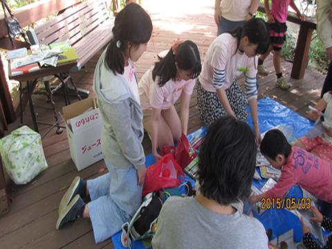 本学「恵泉お話を語る会(恵話会)」のメンバー4名が、5月4日(日)、13:30~15:00、 多摩市立グリーンライブセンターで行われた「こどもまつり2015」に参加し、10名ほどの子供達と一緒に、絵本の読み聞かせ、手遊び、ゲーム、工作を行いました。