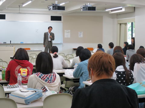 昨日5月7日(木)ランチタイムに、1年生を対象に教職課程ガイダンスを行いました♪恵泉では、中学校・高等学校の国語または英語の「一種免許」の取得が可能です。今まで多くの学生が教員免許を取得し、現在中学高校の現場で活躍しています。当日は約40名が参加し、メモを取りながら熱心に先輩からのお話しや教職員からの説明を聞いていました。