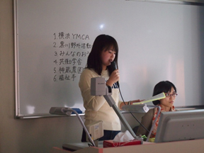 今回の発表者だった7人は、春学期にSL方法論(CSL活動の事前授業)を履修しました。活動は夏休みを中心に、それぞれの関心テーマに合わせて、外国にルーツのある子どもの学習支援を行っているNPO、障がい者の作業・居住施設、多摩市永山にあるコミュニティ・カフェなど、様々な分野の6つの団体で活動を行いました。
