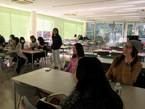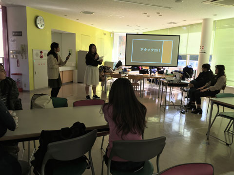 参加人数は少々少なかったものの、3つのグループに分かれて、「アタック25」形式のクイズ大会を皆で競い合いながら楽しみました。このクリスマス会の企画・運営は、すべて2学年の有志が担当。クイズの内容やプログラムの進め方に、大学生らしい創意工夫がみられ、知的好奇心も駆り立てられる充実した内容となりました。