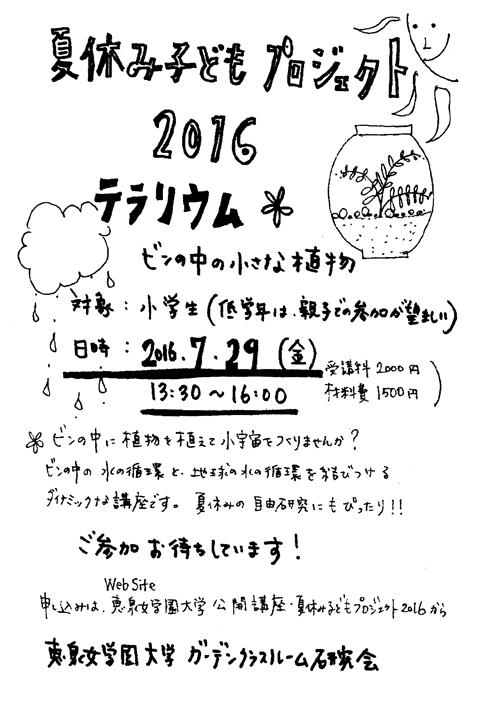 講座後に、生長記録をつけたり、光合成について調べたりすれば、夏休みの自由研究に最適♪