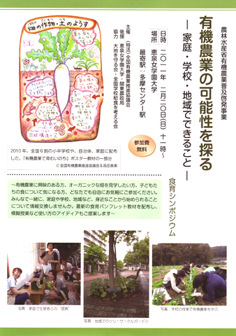 食育シンポジウム「有機農業の可能性を探る」を下記のとおり開催致します。