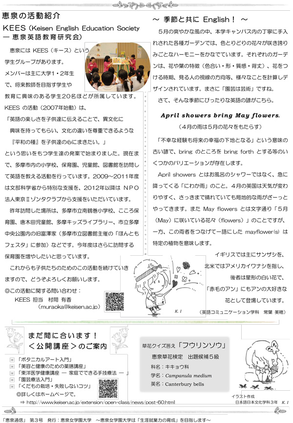 恵泉通信第3号が発行されましたので、お知らせいたします。
