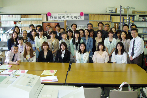 人文学部では、学科、学年別に2011年度通年上位2名の成績優秀者を表彰しました。 表彰式では、成績優秀者の皆さんに賞状と記念品をお贈りし、人文学部の先生方からお祝いしていただきました。