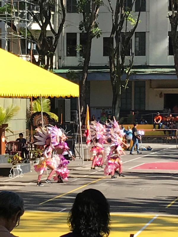 学校のスクールフェスティバルの様子です。この踊りのような出し物の他に劇もやっており、文化祭のようでとても楽しそうでした。(国際社会学科1年 Misaki K.)