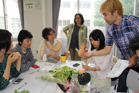 2回目の上映後、本学教授 澤登先生と非常勤講師 山田先生によるトークが行われ、在来種やF1ついて勉強しました。その後には、3グループに別れ、九州から取り寄せた在来種の野菜と、F1種の野菜を実際に食べ比べしました。食べ比べした野菜はきゅうり・にんじん・だいこん。そこで皆さんには、どちらが在来種でどちらがF1のにんじんなのか、食べ当てていただきました。色から分かった方や食べてから分かった方...食べてみると一目瞭然!その正解率は100%でした。在来種のにんじんはF1とは違い、甘さが控えめであり、青臭さがありましたが味に深みを感じました。取り寄せた野菜には、葉ごぼうという初めて見る野菜、絵にかいたような可愛いかぼちゃなど、個性的な野菜がたくさんありました。グループで野菜のことを話し、昔の野菜を懐かしむ方や味の違いに驚いた方...きっと1人1人何か感じて下さったと思います。