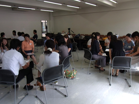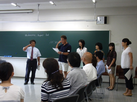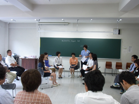 夏の恒例となりました多摩市夏季ネットワーク研修を、今年もさる8月3日、恵泉女学園大学で開催いたしました。多摩市内の小中学校から、英語をご担当の32名の先生方を迎え、今年度から小学校で必修化された英語活動について、理論と実践の両面から聞いて、見て、考えて、発表する、という盛沢山の2時間となりました。テーマは「コミュニケーションを豊かにする外国語活動の展開」。参加された先生方からは「ためになった」、「充実した研修だった」等々、嬉しいコメントをいただきました。