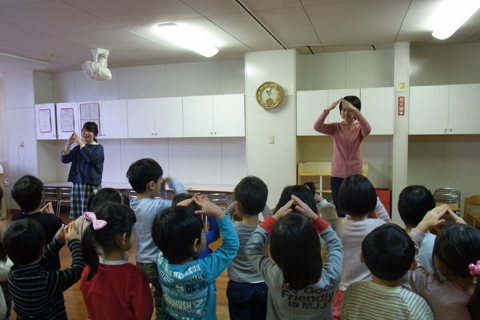 恵泉お話しを語る会」(恵話会)メンバーの学生が、2月19日(火)に多摩市内にある「こころ保育園」を訪問し、歌、絵本の読み聞かせ、語りのボランティア活動を行いました。