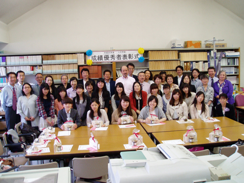 人文学部では、学科、学年別に2012年度通年上位2名の成績優秀者を表彰しました。 表彰式では、成績優秀者の皆さんに賞状と記念品をお贈りし、学長、事務局長、人文学部の先生方からお祝いしていただきました。