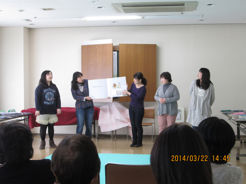 本学「恵泉お話を語る会(恵話会)」のメンバー5名が、3月22日(土)に多摩市立関戸図書館でおはなし会を行いました。当日は16名ほどの子供達や大人がお話しを聞きに来てくれました。学生はのびのびとお話しや手遊びを発表し、最後は全員で歌を交えた英語絵本で40分のおはなし会を締めくくりました。プログラムは下記の通りです。