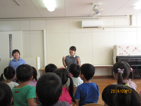 本学「恵泉お話を語る会(恵話会)」のメンバー5名、及び多摩大学からの男子学生1名計6名が、9月12日(金)にこころ保育園を訪問し、奉仕活動を行いました。年中組30名、年長組28名の子供たちを対象に組ごとに35分ほど活動し、絵本の読み聞かせ、歌、手遊びなどを行いました。子どもたちに馴染みのあるお話しもあり、学生は元気な子どもたちとの交流を通じ、楽しく活動できました。さらに、今回は他大学からの学生とのジョイントという初の試みもあり、学生は様々な面で学びを深めることができました。