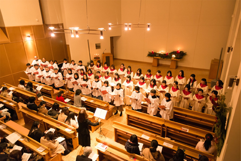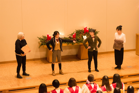 今年のテーマは<なぜクリスマスを祝うの?>。劇と音楽を織り交ぜ、チャペルに集う皆さんと共に賛美と祈りを合わせ、クリスマスを喜び、祝いました。