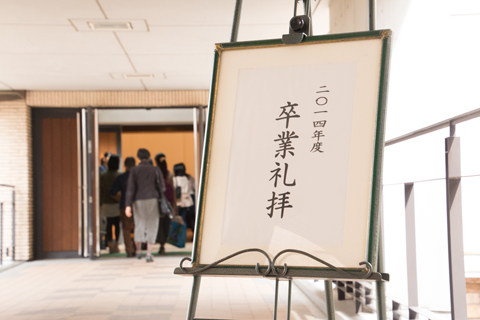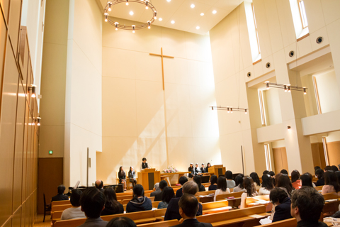 卒業を翌日に控えた学生たち・教職員と共にチャペルに集い、礼拝が行われました。