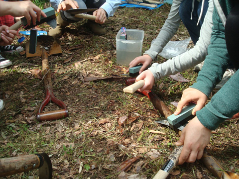 そして、作業終了後は鎌とノコギリの手入れも皆でしました。