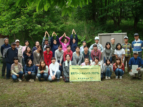 この活動は、東京都の緑地保全プログラムである"東京グリーン・キャンパス・プログラム" (大学生が緑地保全活動に参加するプログラム)として行っており、7年目に入ります。